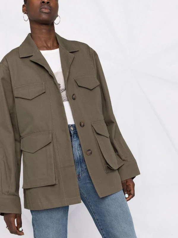 Totême continues their idea of creating a daily uniform through key wardrobe staples with this shirt jacket. Crafted from cotton and in a dark green colourway, this piece presents a versatile design.