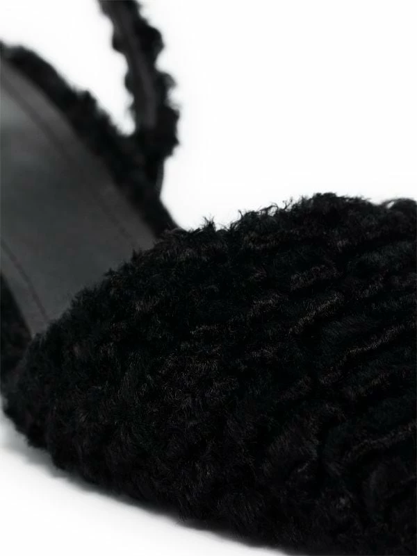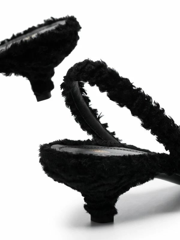 Stockholm-based Totême ‘explores the appeal of a modern uniform’ and does so using refined materials and classic lines. Crafted in Italy from soft leather and covered with faux-shearling for a textured look, The Slingback pumps boast a slingback strap at the heel and a sharp pointed toe that complements their kitten heel.
