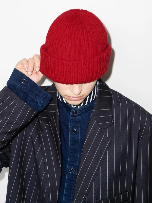 Designed in a statement red colourway, this beanie is defined by its chunky knit construction. Made from wool, it is completed with a wide turn-up brim.