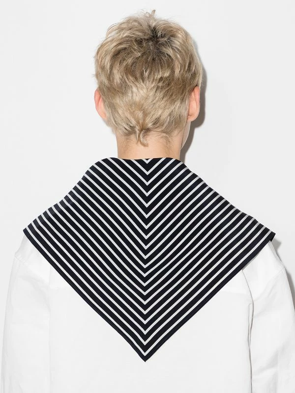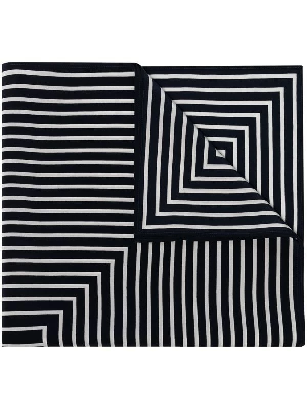 Totême’s silk scarf is instantly recognisable thanks to the monogram print at its centre. Crafted in navy blue, it features contrasting white stripes and trims.