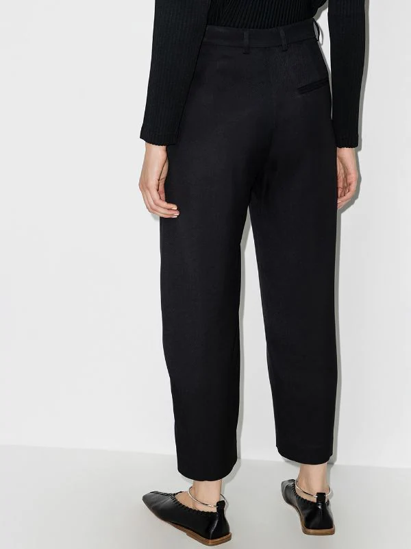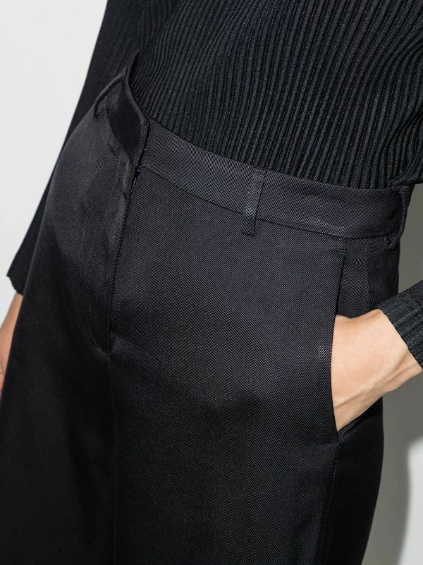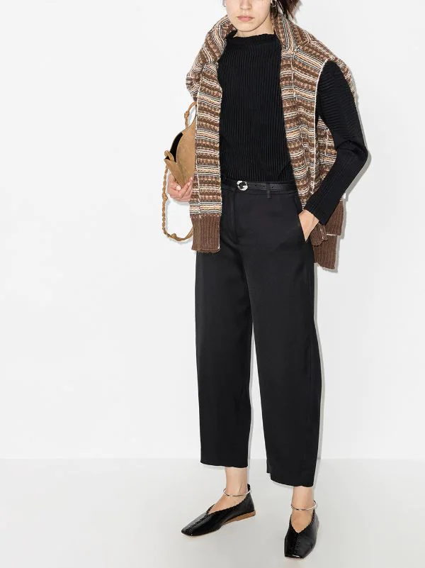 Stockholm-based Totême ‘explores the appeal of a modern uniform’ and does so using refined materials and classic lines. Cut for a cropped tapered silhouette, these wide-leg trousers feature a mid-rise and fasten at the front with a concealed closure.