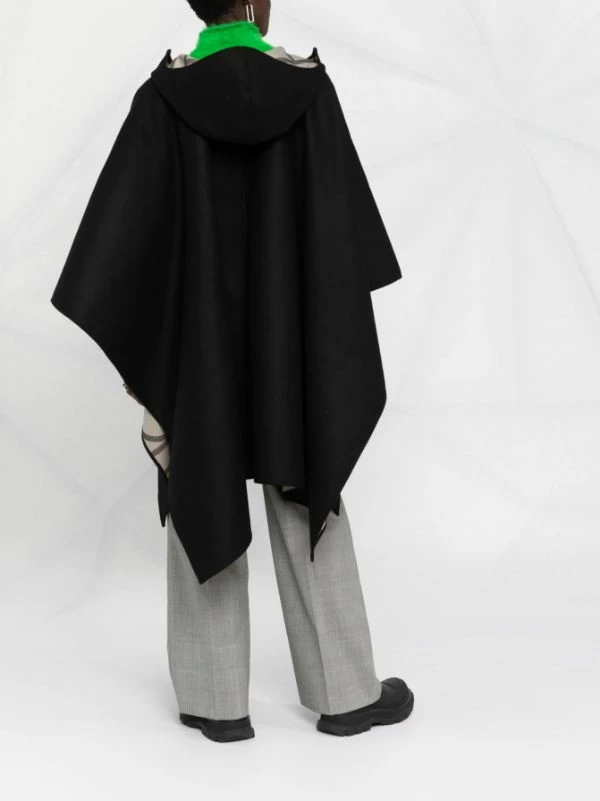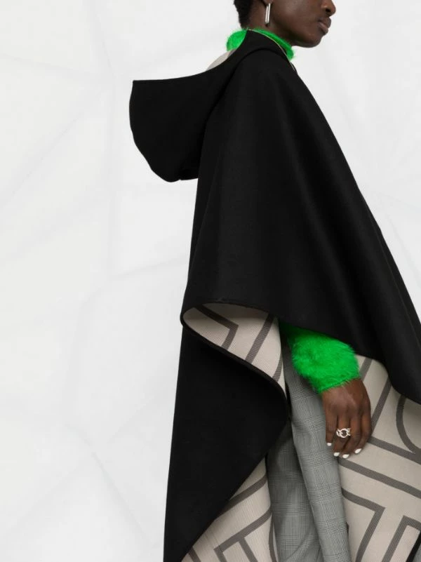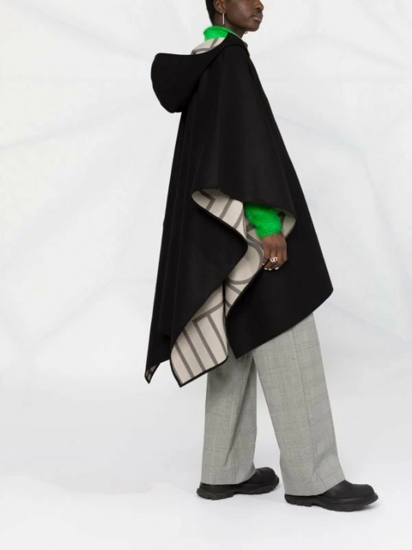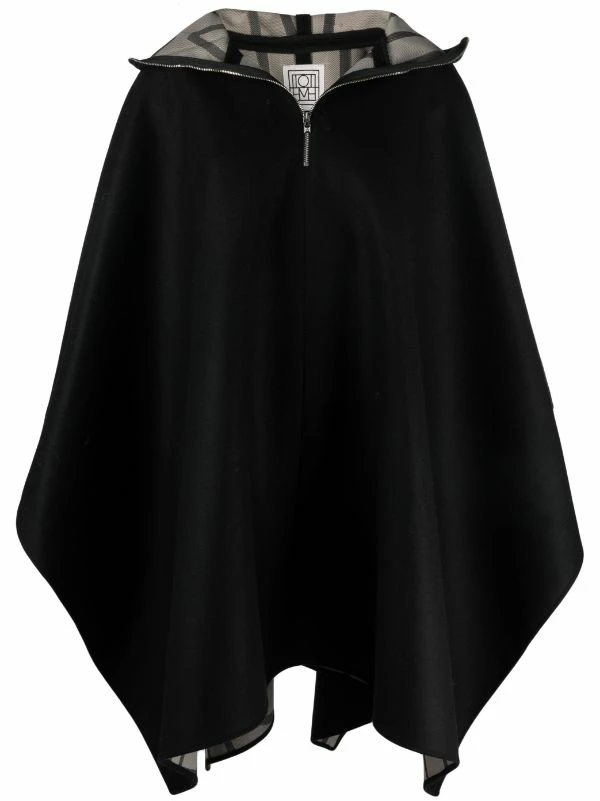 Aligned with its minimalist approach to design, Totême adds a subtle signature detail to this black cape. Spun from water repellent wool, this layering piece is lined with a contrasting monogram pattern.