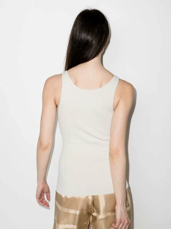 No closet is ever complete without basics. In an ivory-white shade, this scoop-neck top is the ideal piece for those mornings when all you’re looking for is comfort – or any other morning if you ask us. Going out in Totême?