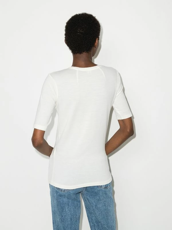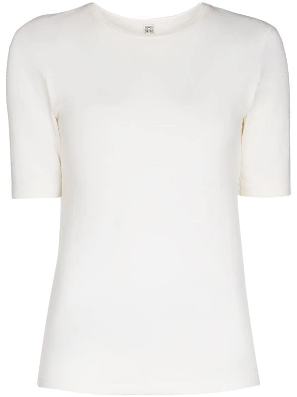Stockholm-based Totême ‘explores the appeal of a modern uniform’ and does so using refined materials and classic lines. Spun from a soft blend of wool, this white top featured half-length sleeves and a lightweight construction.