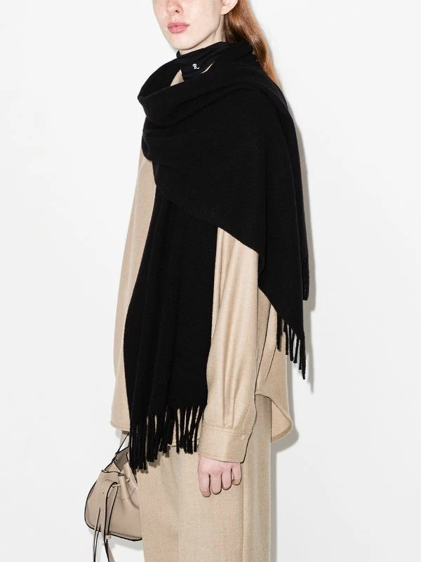 Totême’s understated approach to garments combined with its neutral tones palette creates versatile and timeless pieces. In a black colour and woven from soft virgin wool, this scarf features fringed edges for added texture.