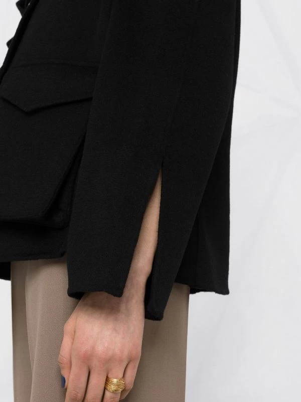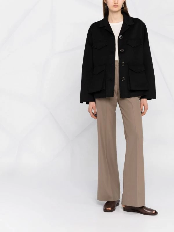 A love for functional clothing lies at the heart of each Totême collection. This black Army doublé flap-pocket jacket echoes the brand’s timeless aesthetic with an oversized silhouette and bespoke T-engraved buttons.