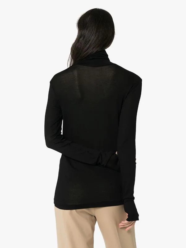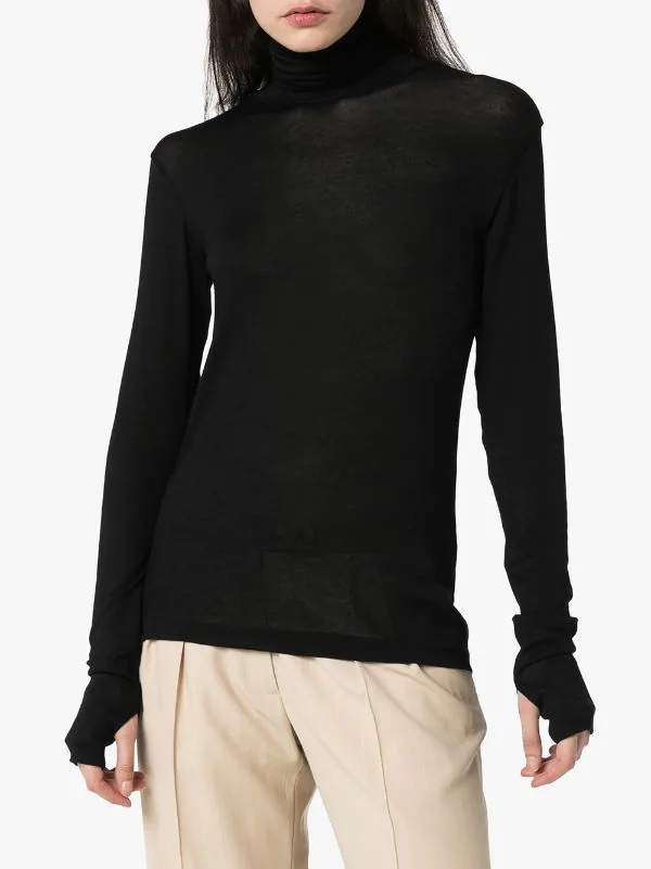 A classic’s a classic. And this black fine knit polo neck from Totême is certainly that. What are you waiting for? Featuring a turtle neck, long sleeves, a fine knit and a fitted silhouette.
