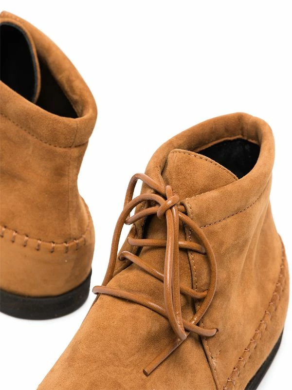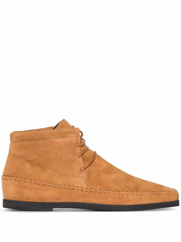 Totême’s understated approach to garments combined with its neutral tones palette creates refined and timeless pieces. Given a contemporary look with their square toe, these lace-up boots are crafted from leather in a cognac shade and sit atop a flat rubber sole.