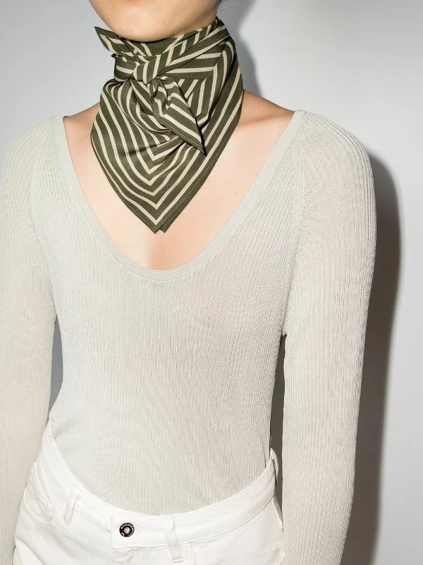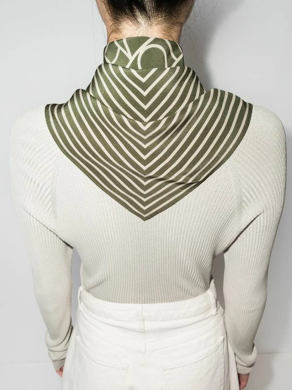 Crafted from silk, this scarf from Totême showcases a striped print pattern with a monogram at the centre. It features a versatile square shape measuring 57x57cm.