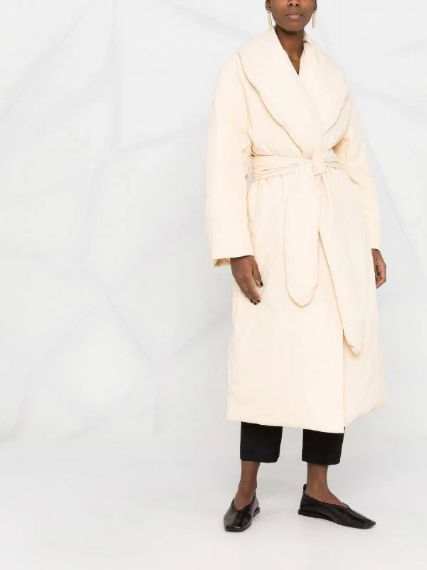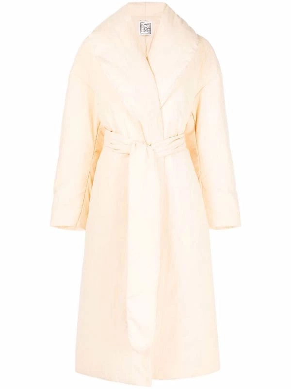 Cosy and classic in equal measure, this belted coat from Toteme expresses the label’s modern design approach. Presented in a cream shade, the piece is designed with soft quilting for a combination of comfort and aesthetics.
