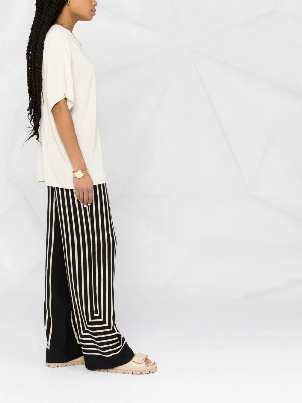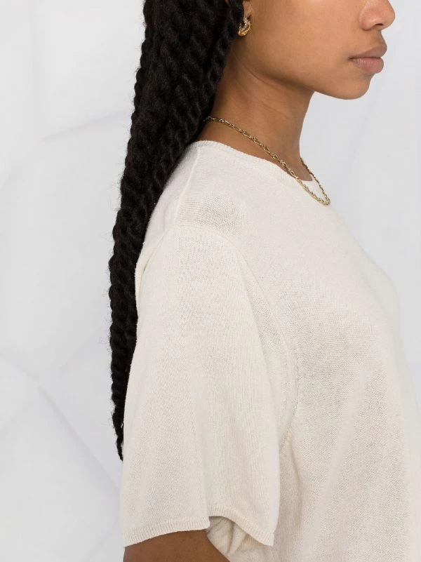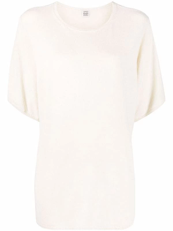 Following the brand’s simple and timeless aesthethic, this short-sleeve T-shirt from Toteme’s SS22 collection appears in a cream shade. Its design is crafted from silk and has an oversized shape.